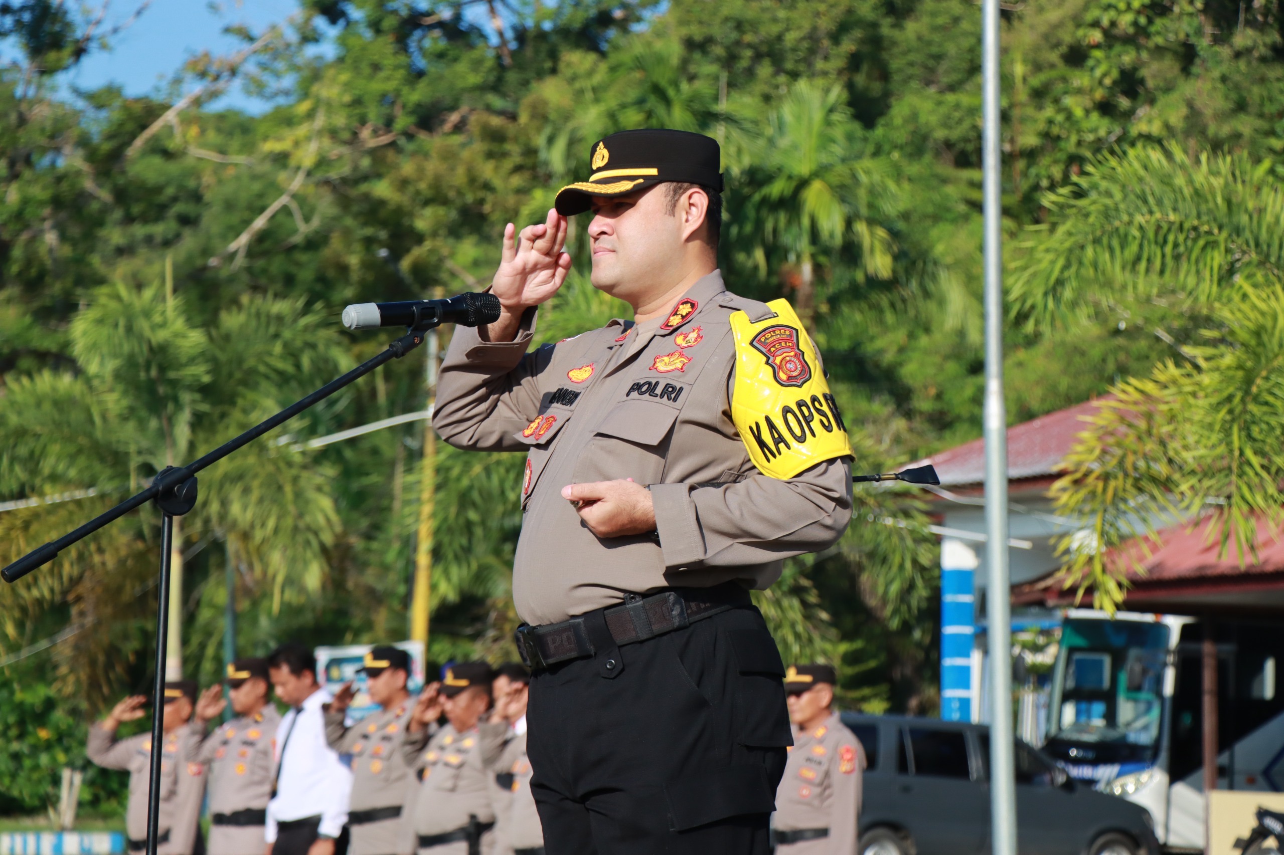Apel gelar pasukan ini dipimpin langsung oleh Kapolres Simeulue Hendry Ferdinand Kennedy, S.H., S.I.K., M.I.K., dengan Komandan Apel Pamapta I SPKT Polres Simeulue Ipda Jamaludin, serta Perwira Apel Kabag Ops Polres Simeulue Kompol Sofyan, S.H., M.M.