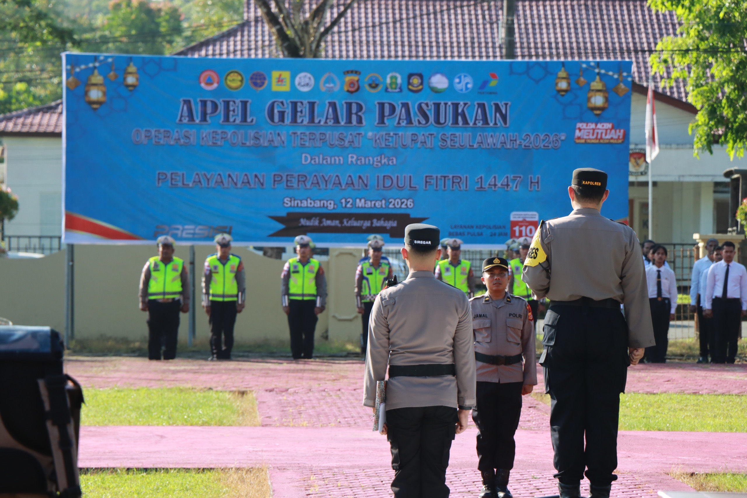 Simeulue — Kepolisian Resor Simeulue melaksanakan Apel Gelar Pasukan Operasi Ketupat Seulawah 2026 sebagai bentuk kesiapan pengamanan Hari Raya Idul Fitri 1447 Hijriah. Kegiatan tersebut berlangsung pada Kamis, 12 Maret 2026, sekira pukul 07.45 WIB, bertempat di Lapangan Apel Mapolres Polres Simeulue, dan berakhir pada pukul 08.30 WIB dalam keadaan aman dan lancar.