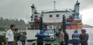Personel KP3 Polres Simeulue Amankan Kedatangan Kapal KMP Teluk Sinabang