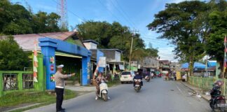 SATLANTAS POLRES SIMEULUE LAKSANAKAN STRONG POINT PAGI DI PERSIMPANGAN KOTA SINABANG
