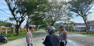 Personel Satlantas Polres Simeulue Himbau Masyarakat untuk Tertib Berlalu Lintas