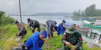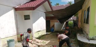 Bhabinkamtibmas Polsek Teupah Selatan Bantu Warga Angkat Tanah di Desa Binaan