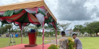 Personel Polres Simeulue Siapkan Tempat Shalat Idul Fitri di Lapangan Tatang...