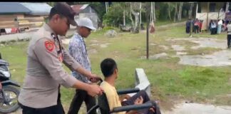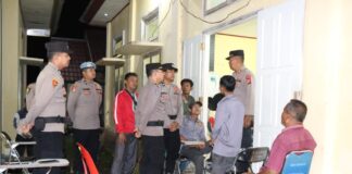 Personel PAM TPS Simeulue Cut Bantu Warga Disabilitas di Polres Simeulue...