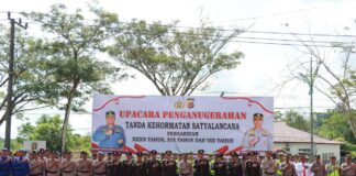 POLRES SIMEULUE GELAR UPACARA PENGANUGRAHAN TANDA KEHORMATAN SATYALANCANA PENGABDIAN