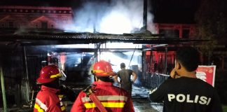 Personel Polres Simeulue Mengamankan Lokasi Kebakaran di Desa Air Dingin