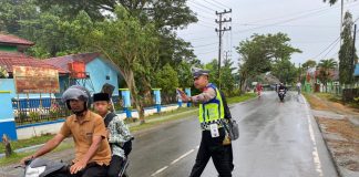 Personel Sat Lantas Polres Simeulue ‘Strong Point’ di Depan SMA Negeri...