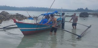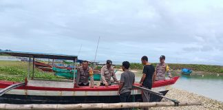 Kanit Binmas dan Bhabinkamtibmas Polsek Alafan Membantu Nelayan Dorong Perahu