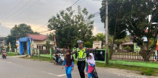 Personel Sat Lantas Polres Simeulue Pastikan Keamanan Anak Sekolah di Kota...