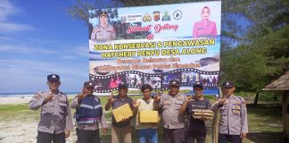POLSEK SIMEULUE TENGAH MEMBERIKAN BANTUAN SEMBAKO KEPADA RELAWAN PENANGKARAN PENYU