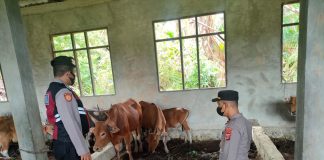 GELAR VAKSINASI HEWAN TERNAK, KASAT BINMAS POLRES SIMEULUE DAMPINGI VAKSINATOR