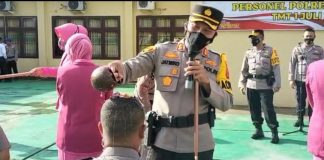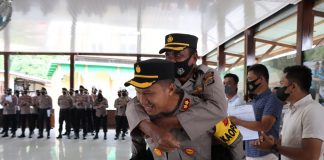KAPOLRES SIMEULUE MENGGENDONG ANGGOTANYA KELILING JOGLO POLRES SIMEULUE.