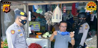 Cegah Penularan Covid-19. Personil Polres Simeulue bagikan masker Kepada Para Jamaah...