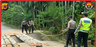 Untuk Antisipasi Kecelakaan. Personil Sat SABHARA Polres Simeulue Pasang Police Line...
