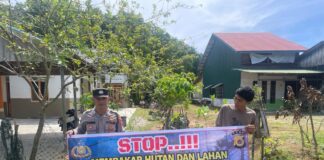 Personel Polsek Teupah Barat Sosialisasikan Pencegahan Karhutla