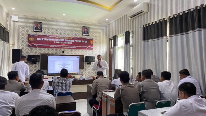 Kegiatan tersebut dilaksanakan sekira pukul 09.00 WIB di Ruang Vicon Polres Simeulue dan dibuka secara resmi oleh Wakapolres Simeulue. Selanjutnya, kegiatan dilanjutkan dengan penyampaian materi oleh Kasubbidsun Luhkum Bidkum Polda Aceh, AKBP Tirta Nur Alam, S.E.