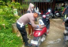 SATLANTAS POLRES SIMEULUE MELAKSANAKAN PENEGURAN DAN PENINDAKAN PELANGGARAN LALU LINTAS DI DESA SUAK BULUH