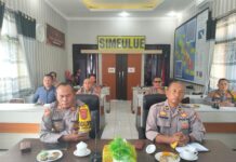 *Simeulue, Aceh* – KabagOps Polres Simeulue, AKP Surianto, didampingi oleh Kasat Binmas Polres Simeulue, Iptu Syofyan, serta diikuti oleh Pejabat Utama (PJU) Polres Simeulue,...