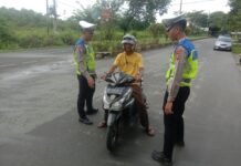 Personel Sat Lantas Polres Simeulue Lakukan Peneguran terhadap Pelanggar Lalu Lintas