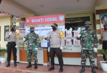 TNI-POLRI PEDULI KEMANUSIAAN. Bagikan Paket Sembako Dan Masker Untuk Warga Kurang Mampu