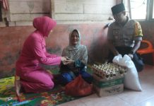 BERBAGI: Bhayangkari Cabang Simeulue memberikan bantuan kepada warga Kurang Mampu di Desa-desa dikecamatan Kab.Simeulue.(22/5/2019).