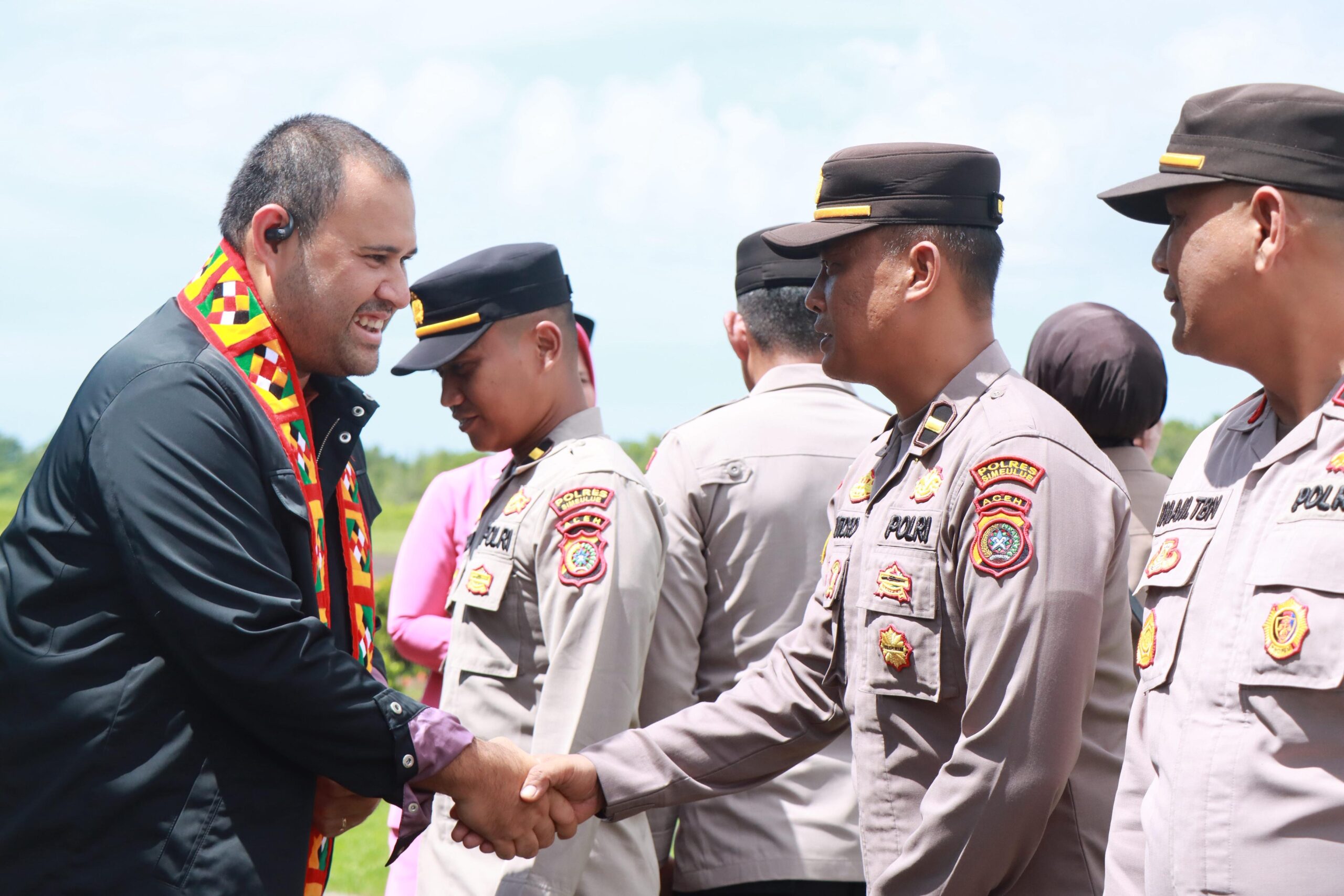 Sekitar pukul 13.45 WIB, Kapolres Simeulue beserta Ibu tiba di Pendopo Bupati Simeulue dan disambut oleh Forkopimda, tokoh agama, serta tokoh masyarakat. Kegiatan dilanjutkan dengan prosesi peusijuek dan ramah tamah yang dipimpin langsung oleh Bupati Simeulue.