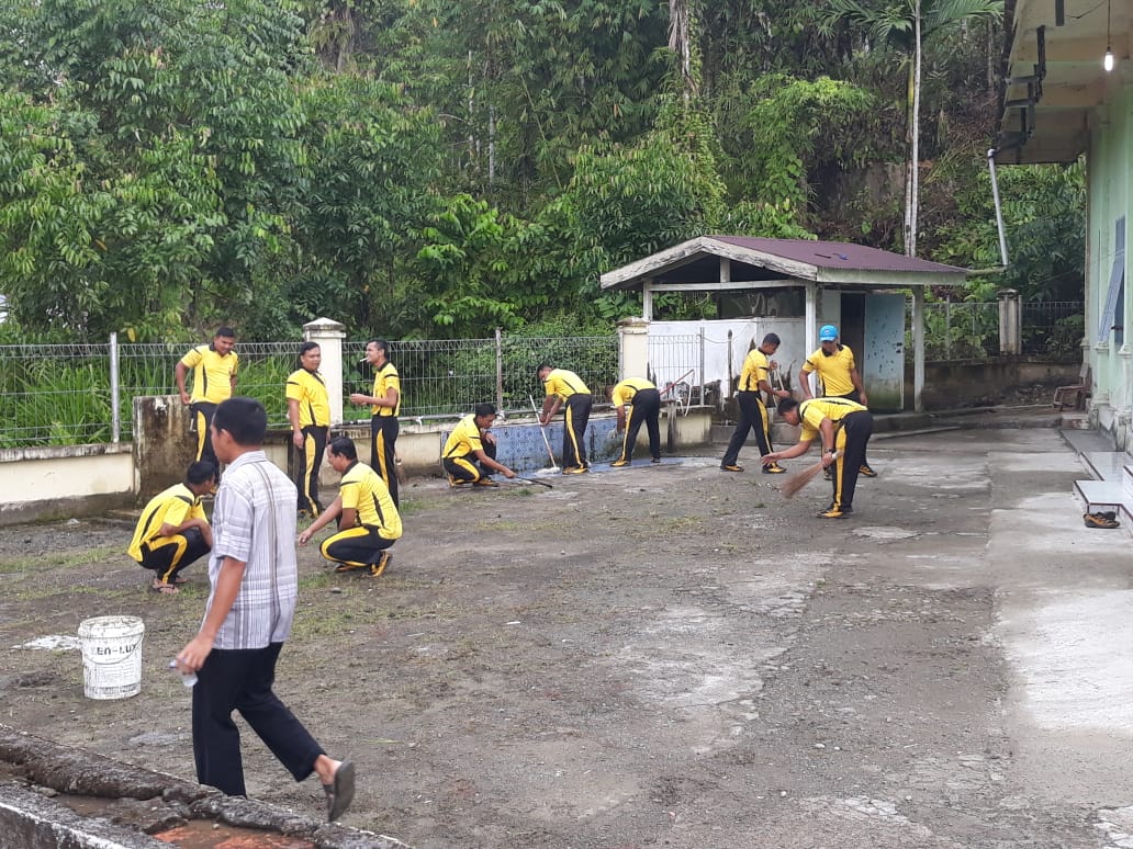pelaksanaan gotong royong bersama seluruh personel dan masyarakatpun, sangat antusias terlihat seluruh personel dan masyarakat sangat bersinergi dalam membersihkan seluruh area masjid.