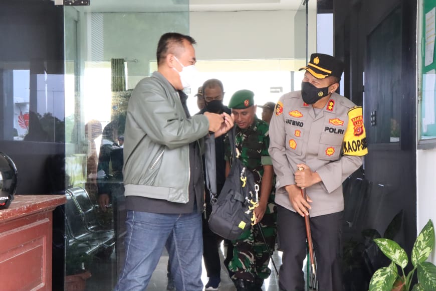 WWW.TRIBRATANEWSSIMEULUE.COM-Kapolres Simeulue AKBP Jatmiko, S.H.,M.H bersama no pejabat Forkopimna Kabupaten Simeulue menyambut kedatangan Danrem 012 Teuku Umar KOLONEL INF Riyanto . S.I.P dalam rangka kunjungan kerja di bandara Lasikin Kabupaten Simeule, Sabtu (30/07/2022).