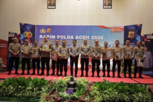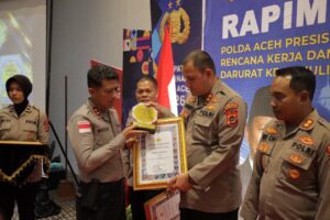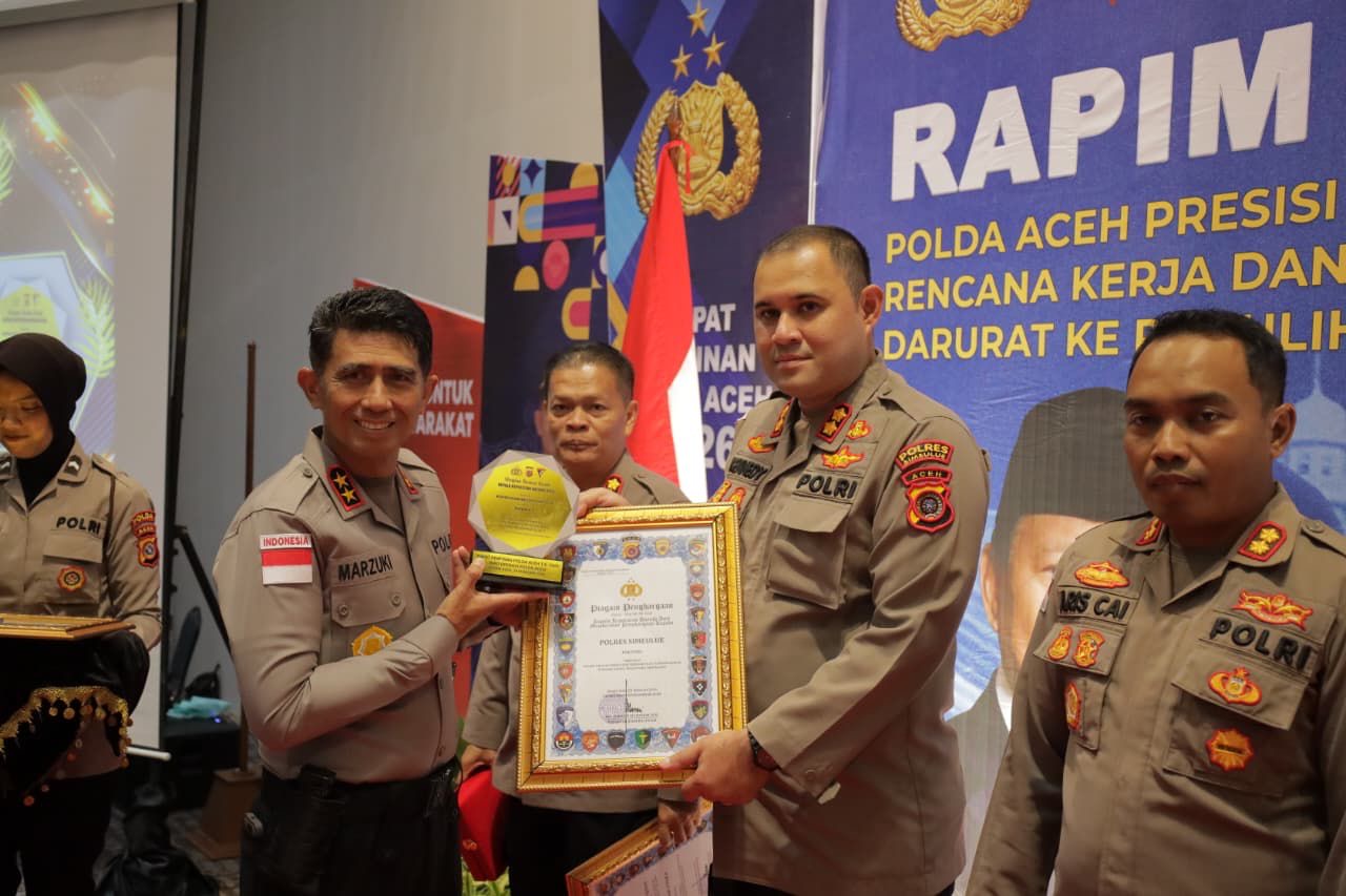 Simeulue, 25 Februari 2026 – Kapolres Polres Simeulue, AKBP Hendry Ferdinand Kennedy, S.H., S.I.K., M.I.K., menerima penghargaan dari Kapolda Polda Aceh atas prestasi kinerja dalam penyelesaian perkara dengan capaian peringkat kedua terbaik periode tahun 2025.Penghargaan tersebut diberikan sebagai bentuk apresiasi pimpinan atas dedikasi dan profesionalisme jajaran Polres Simeulue, khususnya Satuan Reserse Kriminal (Sat Reskrim), dalam menangani berbagai perkara tindak pidana di wilayah hukum Kabupaten Simeulue.