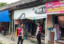 Kapolsek Simtim Iptu D.Aritonang saat Berpatroli bersama Bhabinkamtibmas Brigadir Furqan di Desa Sua – sua melaksanakan sosialisasi Saber Pungli (sapu bersih pungutan liar), jum’at (25/01/2019) bertempat di Kantor Desa Sua-sua.