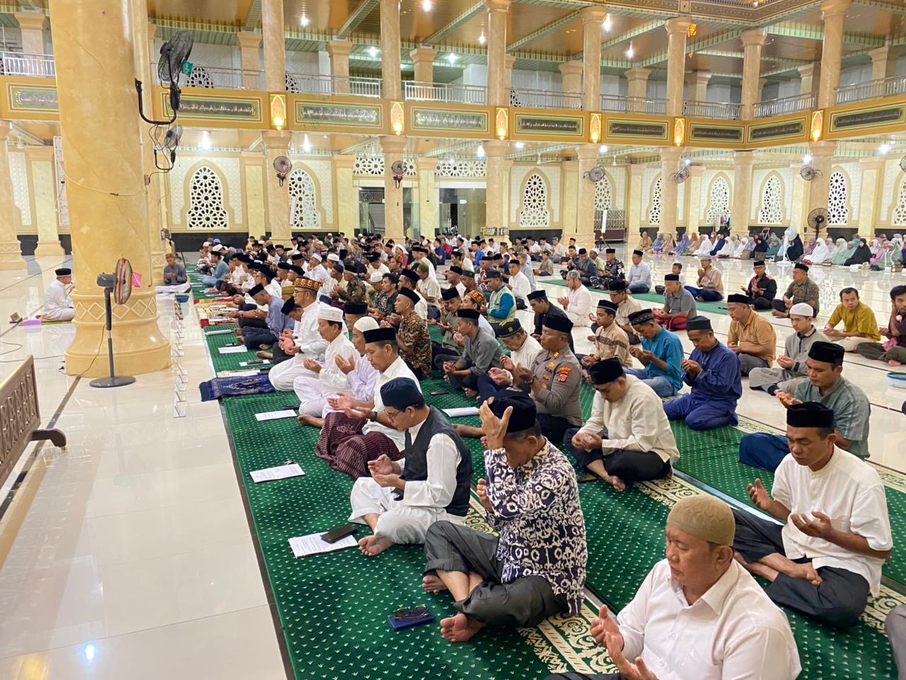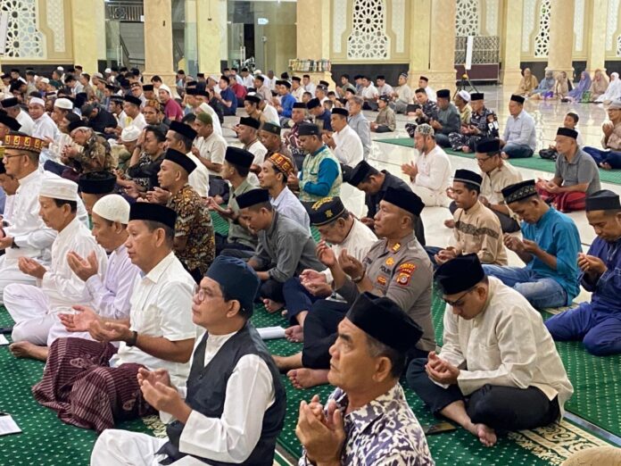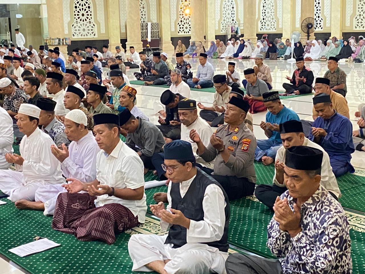 SIMEULUE – Pemerintah Kabupaten Simeulue menggelar kegiatan zikir, tahlil, dan doa bersama dalam rangka memperingati 21 tahun peristiwa Tsunami Aceh (Smong), Jumat (26/12/2025). Kegiatan tersebut dilaksanakan di Masjid Tgk. Khalilullah, Desa Air Dingin, Kecamatan Simeulue Timur, Kabupaten Simeulue.Kegiatan yang dimulai sekitar pukul 08.00 WIB ini dipimpin langsung oleh Bupati Simeulue, Mohammad Nasrun Mikaris, S.H., M.H., dan dihadiri oleh unsur Forkopimda, tokoh agama, pimpinan instansi vertikal, jajaran SKPK Pemkab Simeulue, para camat, serta tamu undangan lainnya.