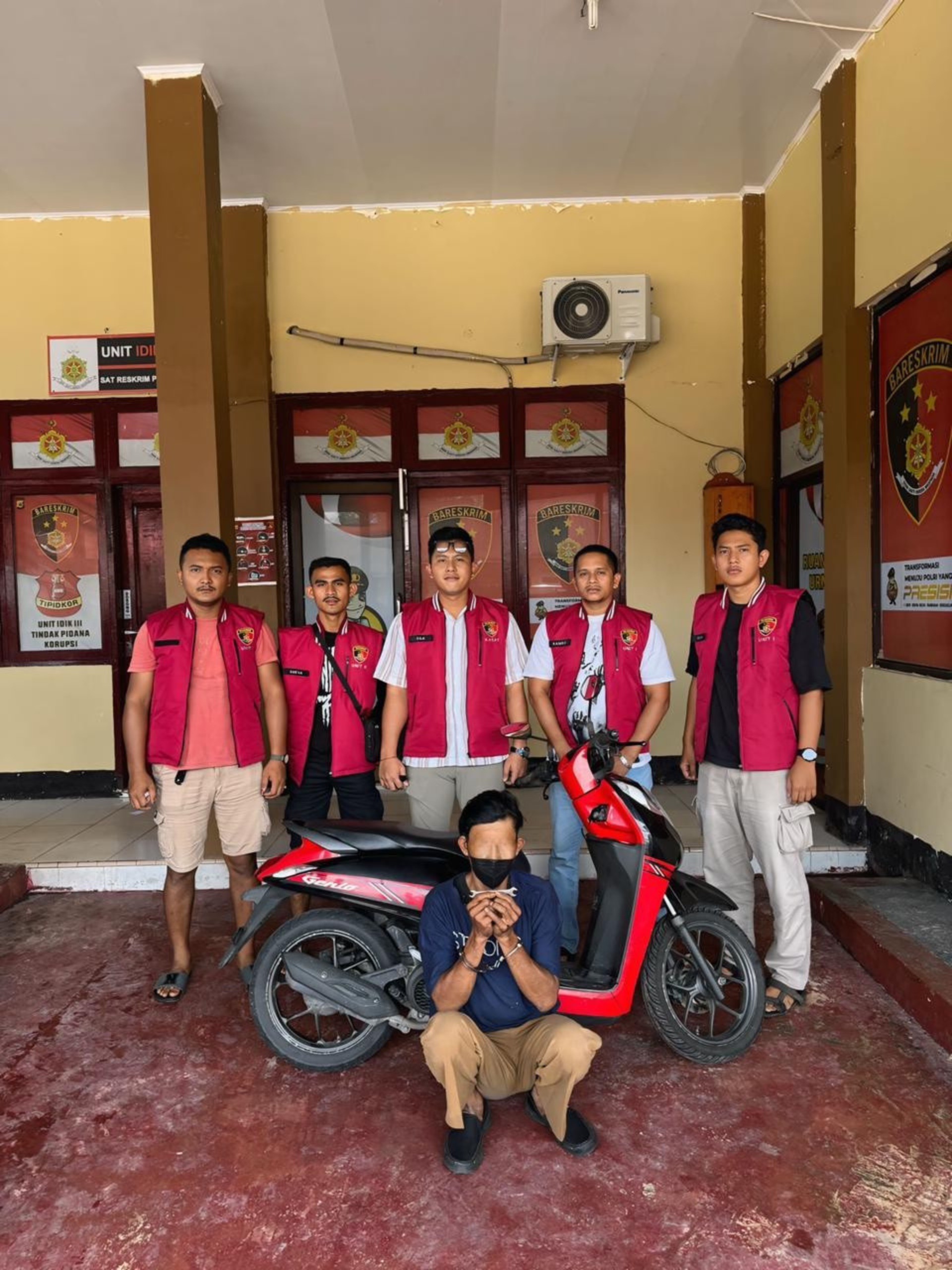 Dalam aksinya, pelaku menggunakan kunci letter T untuk merusak kunci sepeda motor korban. Dari hasil pemeriksaan, diketahui bahwa pelaku merupakan residivis kasus curanmor yang baru saja selesai menjalani hukuman penjara dan kembali mengulangi perbuatannya. Polisi turut mengamankan sejumlah barang bukti, antara lain satu unit sepeda motor Honda Genio warna merah hitam, satu unit handphone Samsung A04E, uang tunai sebesar Rp37.000, serta satu buah kunci pas ukuran 10–12.