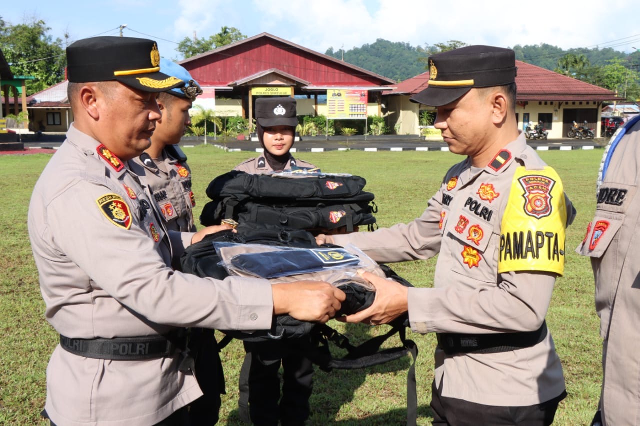 Dalam amanatnya, Kapolres Simeulue, AKBP Sujoko, S.I.K., M.H., menyampaikan komitmen dan kesiapan Polres Simeulue dalam menjaga keamanan dan ketertiban selama proses Pemilu 2024 berlangsung.