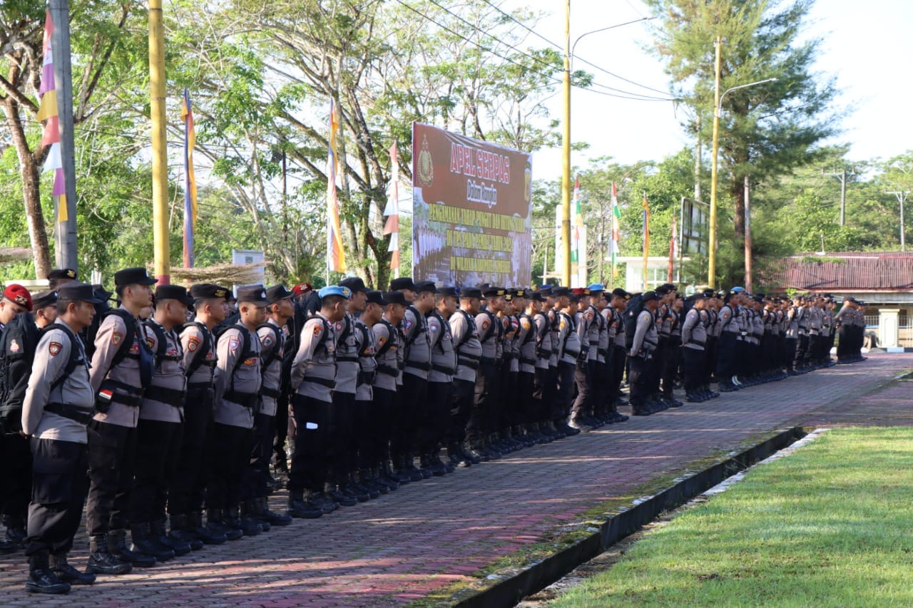 WWWTRIBRATANEWSSIMEULUE.COM- *Simeulue, Senin, 12 Februari 2024* – Polres Simeulue menggelar apel serpas di lapangan Tatang Terawang Tungga, Polres Simeulue, dalam rangka pengamanan tahap pungut dan hitung suara di Tempat Pemungutan Suara (TPS) pada pemilu tahun 2024 di wilayah Kabupaten Simeulue.