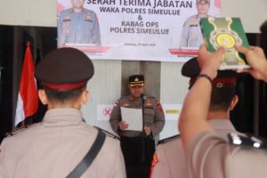 Simeulue – Polres Simeulue melaksanakan kegiatan Serah Terima Jabatan (Sertijab) Wakapolres Simeulue dan Kabag Ops Polres Simeulue pada Selasa, 31 Maret 2025, sekira pukul 09.00 WIB. Kegiatan berlangsung di halaman Mapolres Simeulue, Desa Suak Buluh, Kecamatan Simeulue Timur, Kabupaten Simeulue.