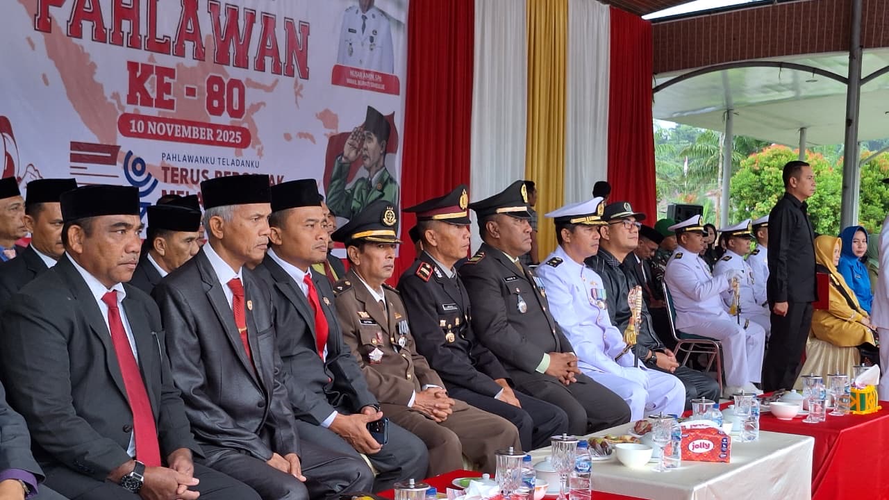 Simeulue, 10 November 2025 – Dalam rangka memperingati Hari Pahlawan Nasional ke-80 Tahun 2025 yang mengusung tema “Pahlawanku Teladanku, Terus Bergerak Melanjutkan Perjuangan”, Pemerintah Kabupaten Simeulue menggelar upacara bendera di Lapangan Pendopo Kabupaten Simeulue, Senin (10/11/2025) pukul 09.00 WIB.