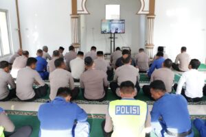 Simeulue – Polres Simeulue mengikuti kegiatan Bimbingan Rohani dan Mental (Binrohtal) dalam rangka Peringatan Isra Mi’raj Nabi Muhammad SAW Tahun 2026 yang dilaksanakan secara virtual, Kamis (22/01/2026).