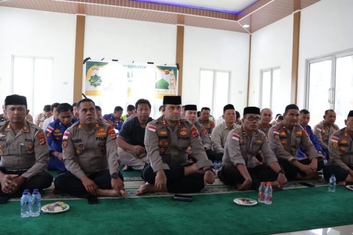 Kegiatan tersebut berlangsung mulai pukul 08.00 WIB hingga selesai, bertempat di Musala Babuttaqwa Mapolres Simeulue, dan diikuti oleh seluruh jajaran Polres Simeulue dengan suasana aman, tertib, serta penuh khidmat.Pelaksanaan kegiatan dipimpin langsung oleh Kapolres Simeulue AKBP Hendry Ferdinand Kennedy, S.H., S.I.K., M.I.K., didampingi Wakapolres Simeulue KOMPOL Firdaus Jufrida, S.T., M.Si., serta diikuti para Pejabat Utama Polres Simeulue, para Kapolsek jajaran, dan seluruh personel Polres Simeulue.