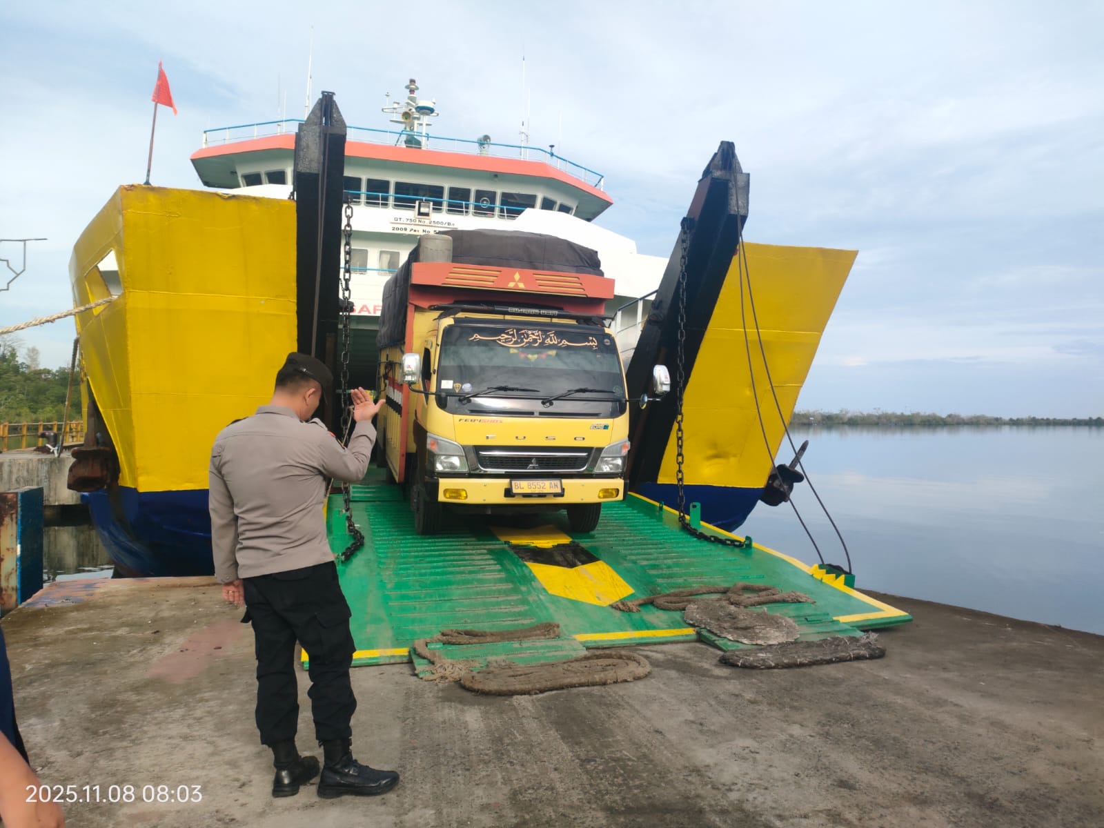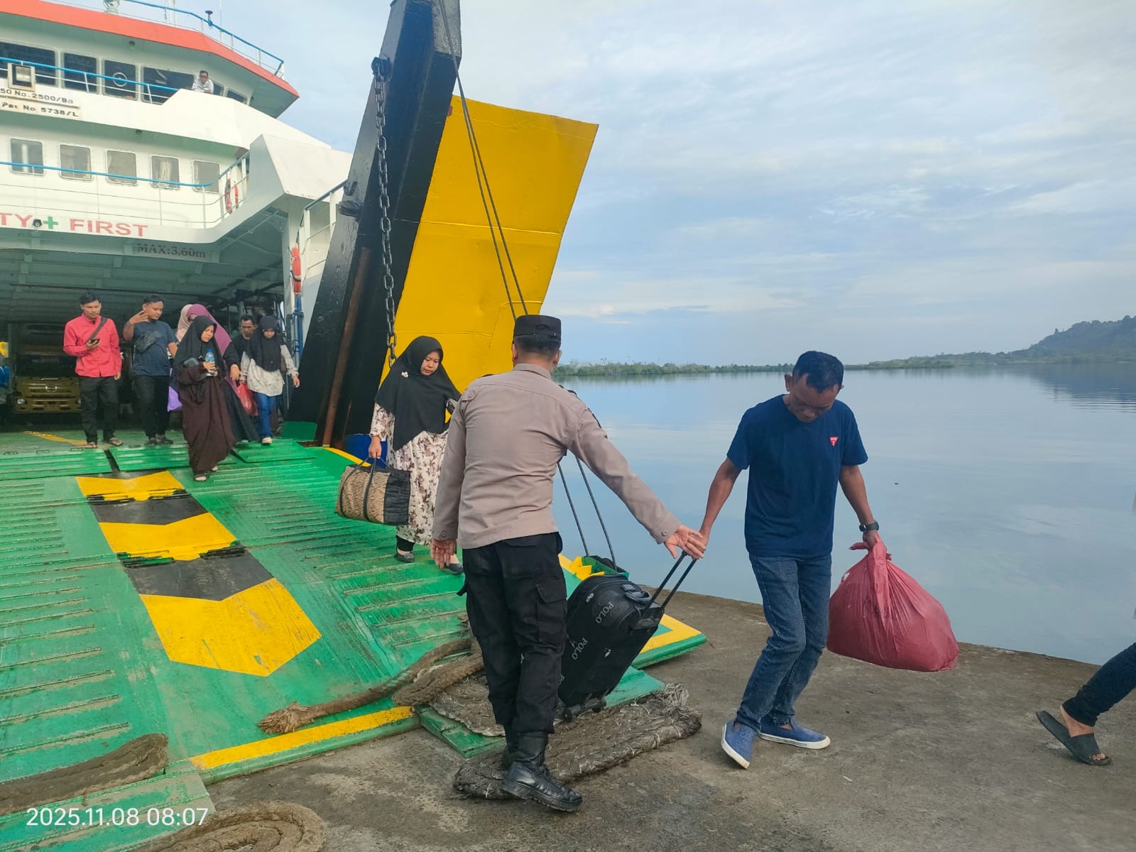 Simeulue, 8 November 2025 – Personel Polres Simeulue melaksanakan kegiatan pengamanan kedatangan kapal KMP. Teluk Sinabang yang berlayar dari Pelabuhan Singkil menuju Sinabang, pada Sabtu (08/11/2025) pagi. Kegiatan tersebut berlangsung di Pelabuhan Kolok, Kecamatan Simeulue Timur, Kabupaten Simeulue.