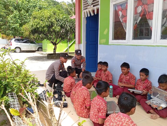 Simeulue – Senin, 1 Desember 2025, Jajaran Polsek Teupah Barat Polres Simeulue melakukan monitoring kegiatan Pembagian Makan Bergizi Gratis (MBG) yang berlangsung di seluruh jenjang pendidikan mulai dari TK/PAUD, SD, SMP hingga SMA sederajat di Kecamatan Teupah Barat dan beberapa sekolah di Kecamatan Teupah Tengah.