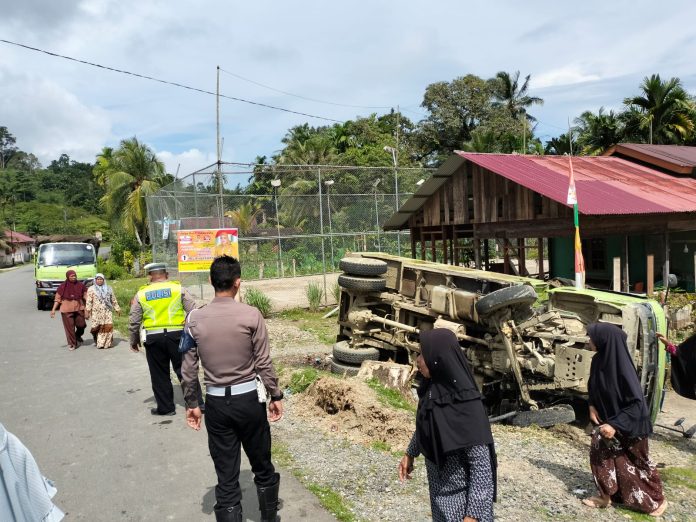 Satu unit Dum Truck dengan nomor plat BL. 8514.AG dilaporkan terbalik di lokasi kejadian. Berita baiknya, tidak ada korban jiwa terkait insiden ini.