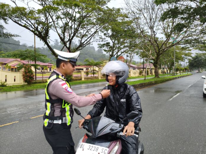 Simeulue – Satuan Lalu Lintas (Sat Lantas) Polres Simeulue melaksanakan kegiatan Polisi Menyapa Masyarakat berupa sosialisasi dan edukasi tertib berlalu lintas kepada masyarakat di wilayah Kabupaten Simeulue, Kamis (8/1/2026).