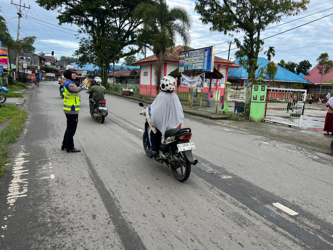 Simeulue – Satuan Lalu Lintas (Satlantas) Polres Simeulue melaksanakan kegiatan Strong Point Pagi di sejumlah titik rawan kemacetan dan kecelakaan lalu lintas di wilayah Kabupaten Simeulue, Rabu (17/12/2025).