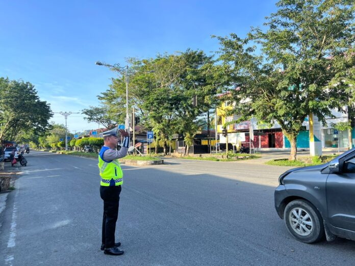 SIMEULUE – Satuan Lalu Lintas (Satlantas) Polres Simeulue melaksanakan kegiatan strong point pagi guna menjaga keamanan, keselamatan, ketertiban, dan kelancaran lalu lintas (Kamseltibcarlantas) di wilayah Kabupaten Simeulue, Selasa (23/12/2025) pagi.