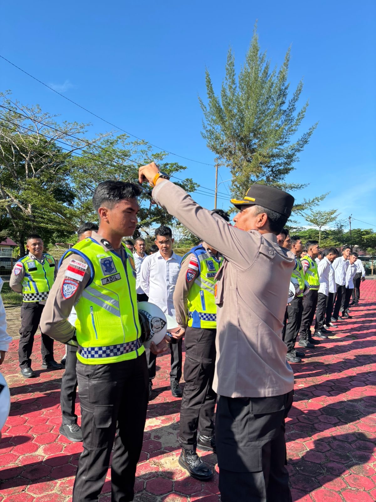 Dalam pelaksanaannya, pimpinan melakukan pemeriksaan secara langsung terhadap anggota, termasuk pemasangan dan pengecekan atribut dinas sebagai simbol kesiapan dan kedisiplinan personel Polri. Hal ini dilakukan guna memastikan seluruh anggota tampil rapi, sesuai ketentuan, serta siap memberikan pelayanan terbaik kepada masyarakat.
